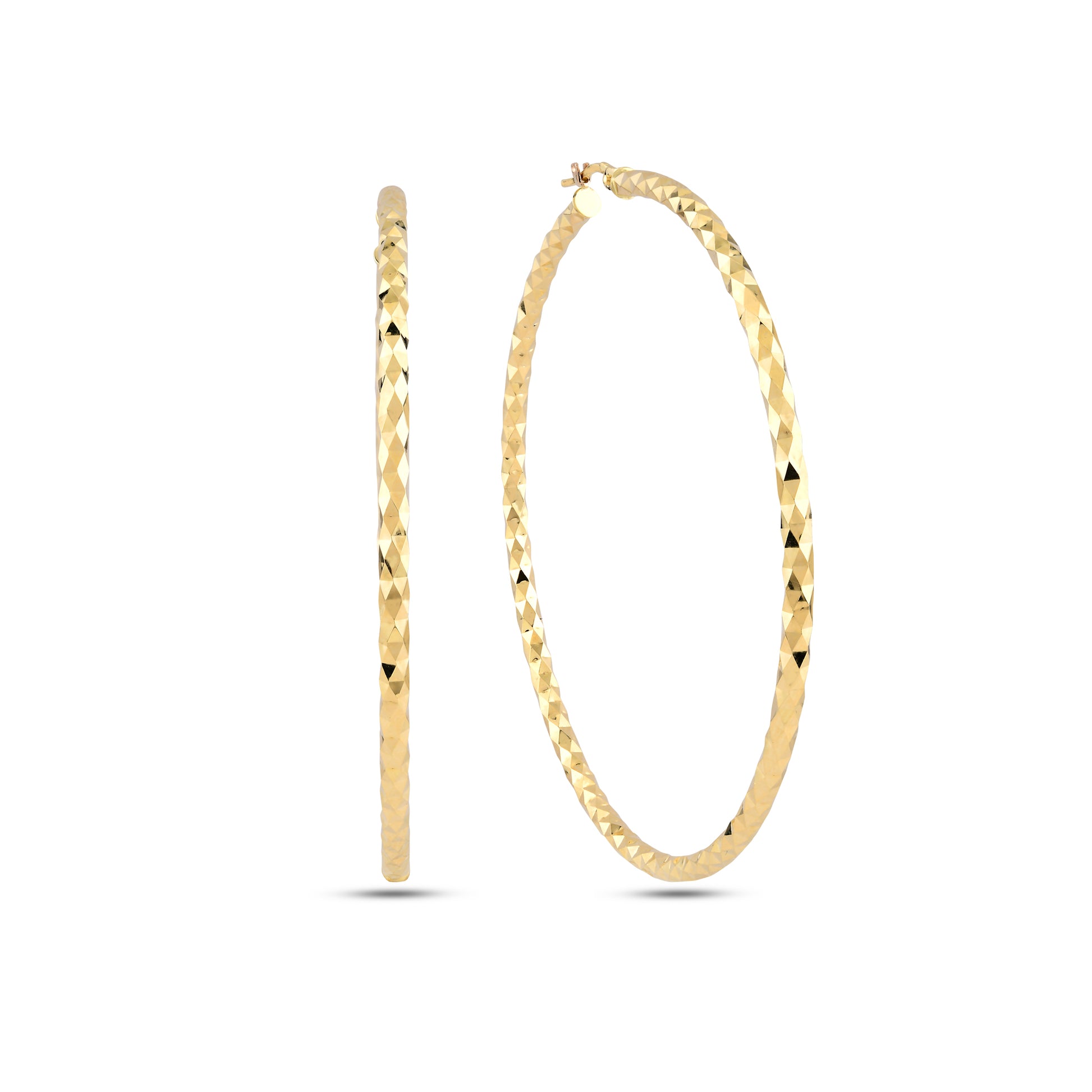 ◊14 ayar saf altın, maksi boy halka küpe.